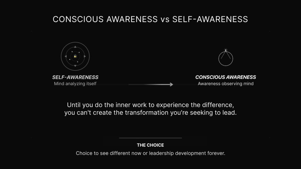 Most people mistake self-awareness for conscious awareness. And for good reason, until you experience conscious awareness, you can’t see it.