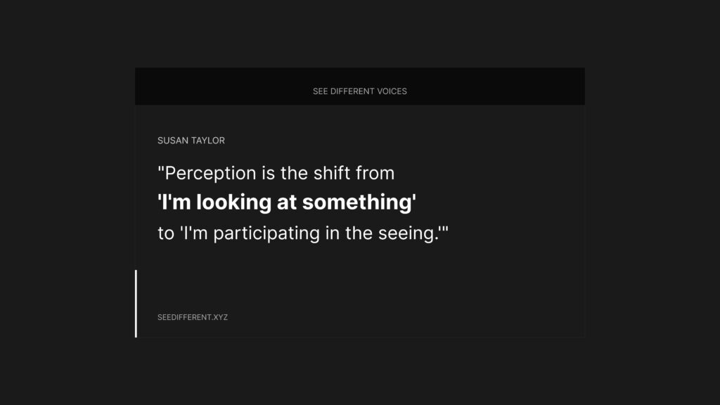 Susan Taylor reflects on perception as a lived capacity—one that shapes leadership, dialogue, and our ability to see reality as it is.